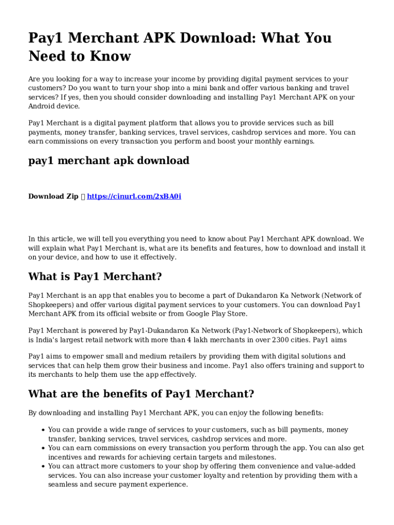 Pay1 Merchant APK Download: What You Need to Know Are you looking for a way to increase your income by providing digital payment services to your customers? Do you want to turn your shop into a mini