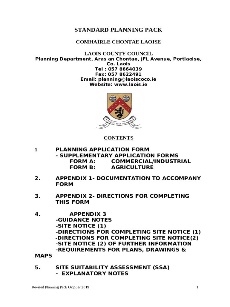 The laois county council planning search is a Word document that should be submitted to the specific address in order to provide some information. It must be completed and signed, which can be done manually in hard copy, or via a particular solution like PDFfiller. It helps to fill out any PDF or Word document directly in your browser, customize it depending on your needs and put a legally-binding e-signature. Right away after completion, the user can easily send the laois county council planning search to the appropriate receiver, or multiple ones via email or fax. The template is printable as well from PDFfiller feature and options presented for printing out adjustment. Both in electronic and physical appearance, your form will have a organized and professional look. It's also possible to save it as the template for later, so you don't need to create a new blank form over and over. You need just to amend the ready document.