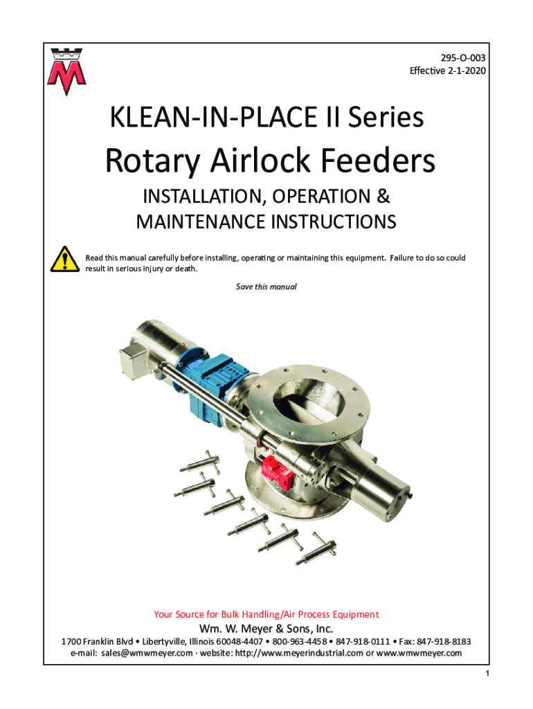 295O003 Effective 212020KLEANINPLACE II SeriesRotary Airlock Feeders INSTALLATION, OPERATION & MAINTENANCE INSTRUCTIONSRead this manual carefully before installing, operating or maintaining this equipment.