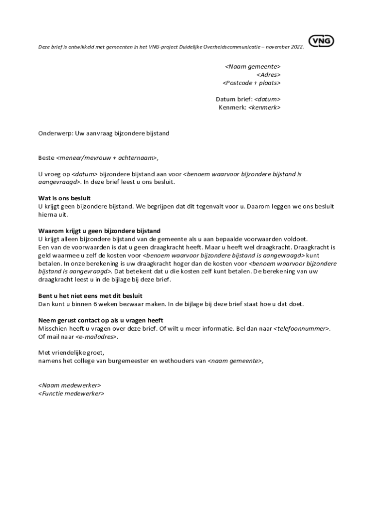 Pak de gratis Brief afwijzing bijzondere bijstand - Toolkit Taal