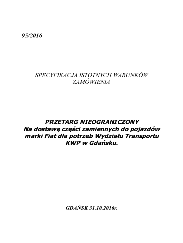 95/2016SPECYFIKACJA ISTOTNYCH WARUNKW ZAMWIENIAPRZETARG NIEOGRANICZONY Na dostaw czci zamiennych do pojazdw marki Fiat dla potrzeb Wydziau Transportu KWP w Gdasku.GDASK 31.10.2016r.SPIS TRECI ROZDZIA