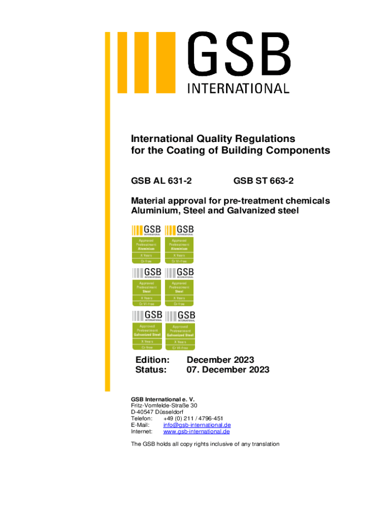 GSB 02 Vorbehandlung 05 Zertifikat.docxInternational Quality Regulations for the Coating of Building Components GSB AL 6312GSB ST 6632Material approval for pretreatment chemicals Aluminium, Steel