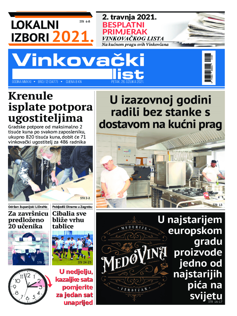 LOKALNI IZBORI 2021.2. travnja 2021. BESPLATNI PRIMJERAKVINKOVAKOG LISTANa kunom pragu svih VinkovanaKrenule isplate potpora ugostiteljima Gradske potpore od maksimalno 2 tisue kuna po svakom zaposleniku,