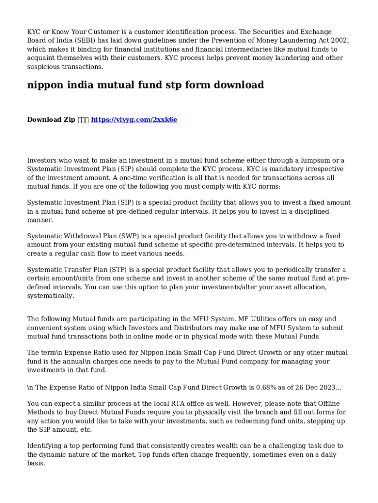 Get the free Nippon India Mutual Fund Stp Form Download
