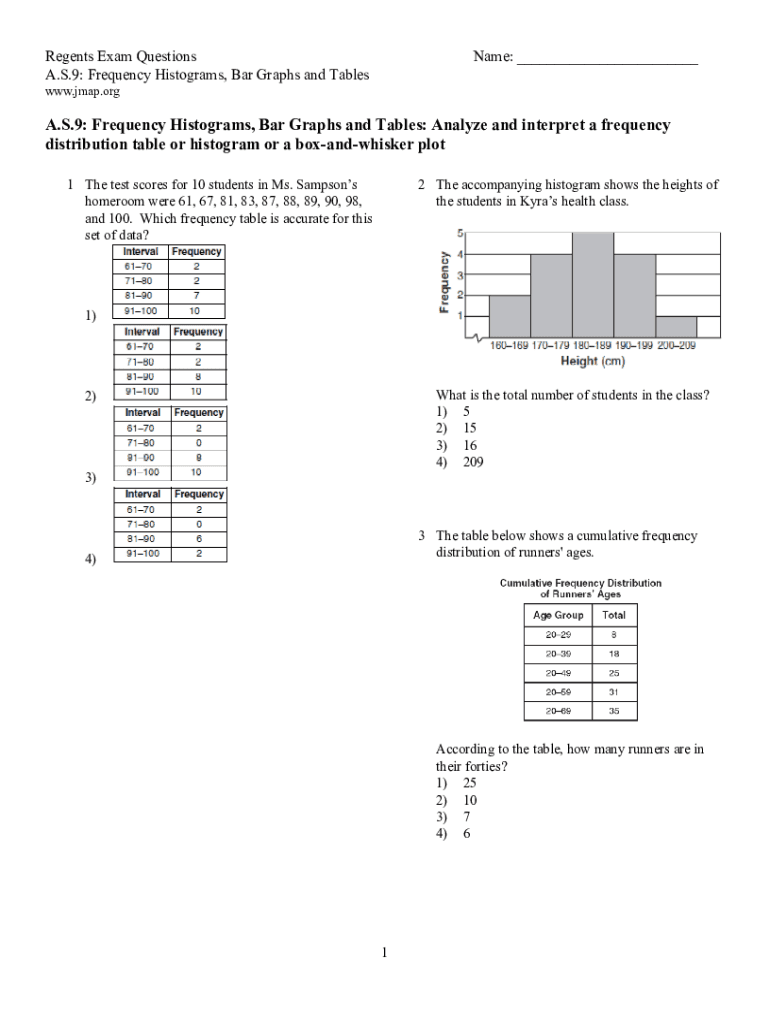 Regents Exam Questions A.S.9: Frequency Histograms, Bar Graphs and TablesName: ___www.jmap.orgA.S.9: Frequency Histograms, Bar Graphs and Tables: Analyze and interpret a frequency distribution table