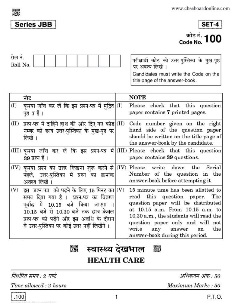 na Ad` bIo &Roll No.Candidates must write the Code on the