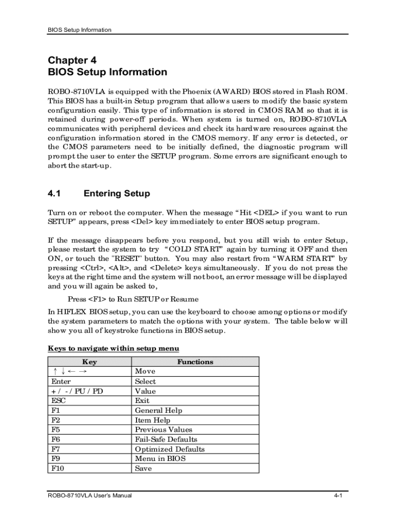 , ,) ) ROBO8710VLA is equipped with the Phoenix (AWARD) BIOS stored in Flash ROM. This BIOS has a builtin Setup program that allows users to modify the basic system configuration easily. This type