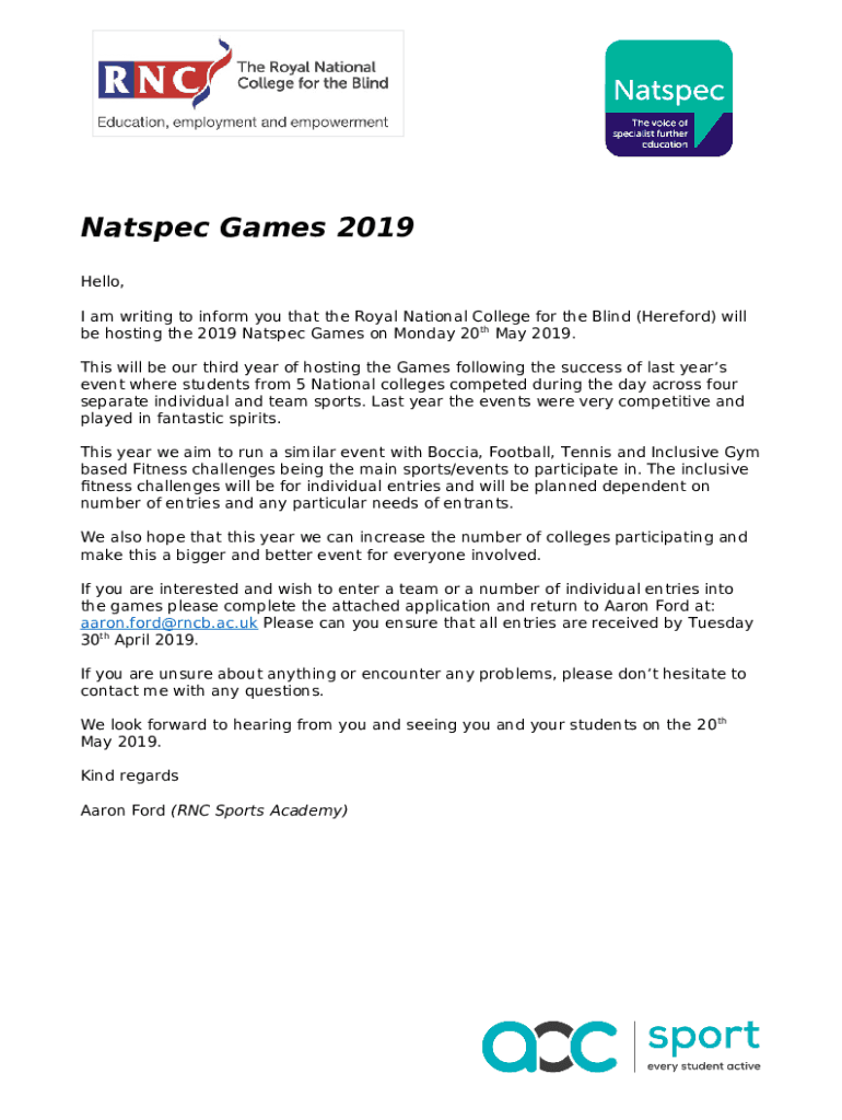 How to fill Natspec Games 2019Booking/Application - natspec org word template