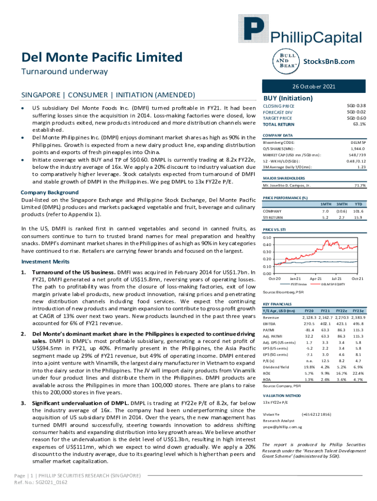 26 October 2021SINGAPORE | CONSUMER | INITIATION (AMENDED)