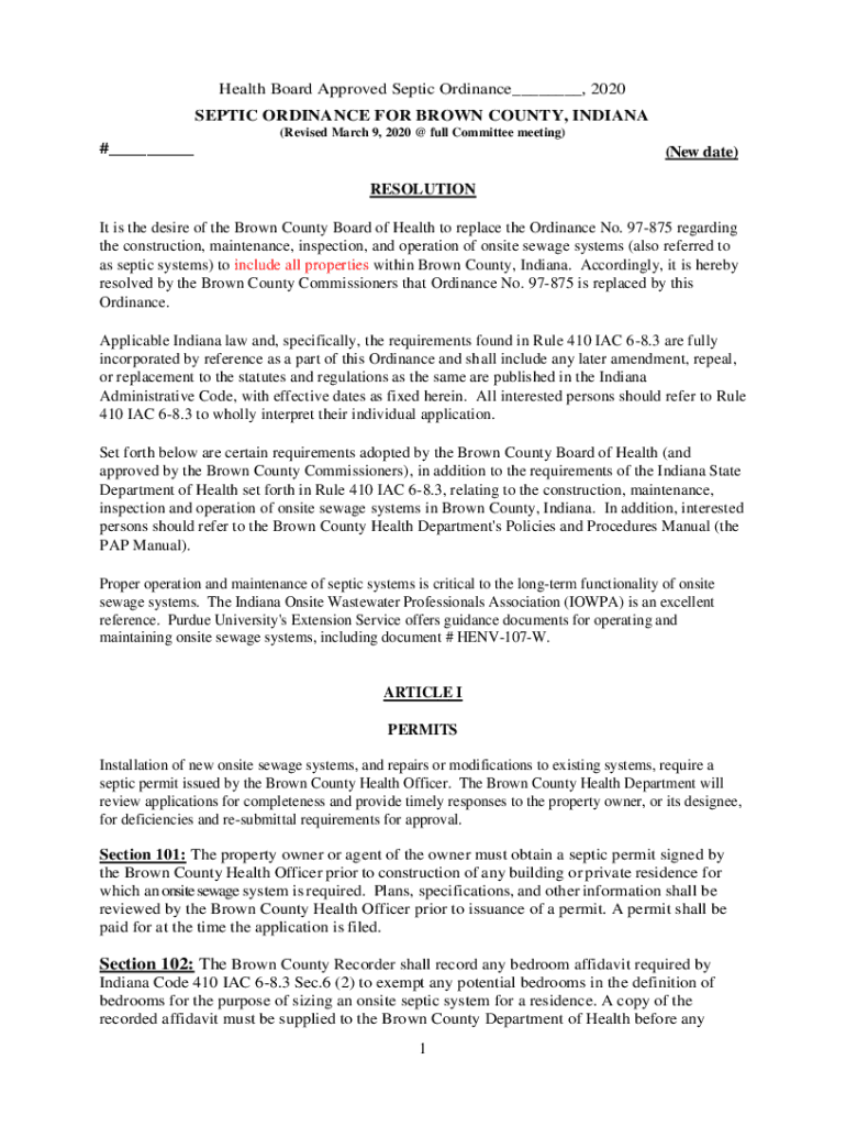 SEPTIC ORDINANCE FOR BROWN COUNTY, INDIANA