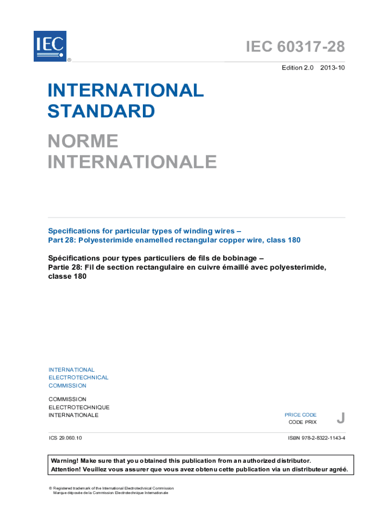 IEC 6031728 Edition 2.0 201310INTERNATIONAL STANDARD NORME INTERNATIONALESpecifications for particular types of winding wires Part 28: Polyesterimide enamelled rectangular copper wire, class 180 Spcifications