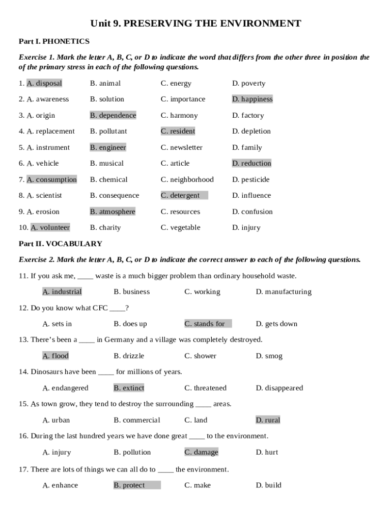 The Bi tp Ting Anh 10 th im - Unit 9: Preserving the ... - Lp 10 is a fillable form in MS Word extension which can be completed and signed for certain purpose. Then, it is furnished to the exact addressee to provide specific information of certain kinds. The completion and signing is possible manually or with a trusted solution like PDFfiller. Such applications help to submit any PDF or Word file without printing out. It also lets you edit it for your needs and put an official legal digital signature. Once you're good, the user ought to send the Bi tp Ting Anh 10 th im - Unit 9: Preserving the ... - Lp 10 to the recipient or several recipients by mail and even fax. PDFfiller is known for a feature and options that make your template printable. It provides a variety of options when printing out. It does no matter how you deliver a form after filling it out - in hard copy or electronically - it will always look well-designed and organized. In order not to create a new file from the beginning over and over, make the original file as a template. After that, you will have an editable sample.