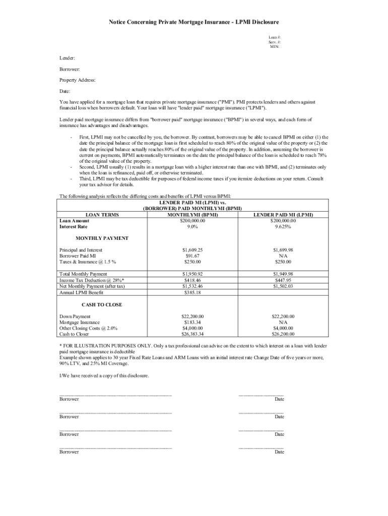Get the free Notice Concerning Private Mortgage Insurance - LPMI Disclosure