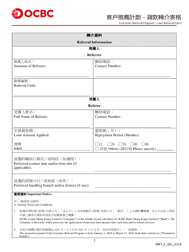 Customer Referral Program Loan Referral Form