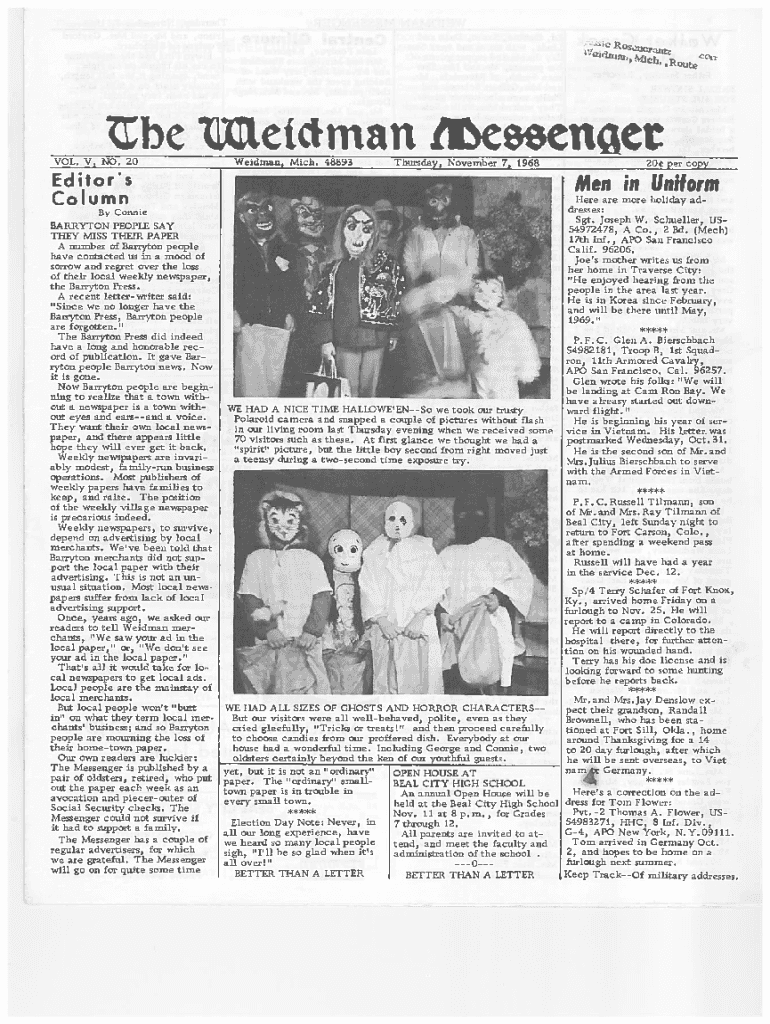 RL2az,i4j.CC,RQZJEbc tUetciman tt,cezcnietVOL. V, NO. 20Weidmaxi, Mich. 48893Thursday, November 7, 1968Editors