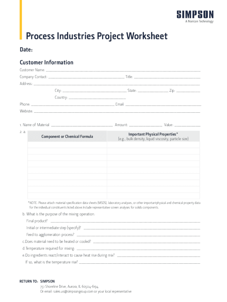 Get the free Process Industries Project Worksheet - SIMPSON