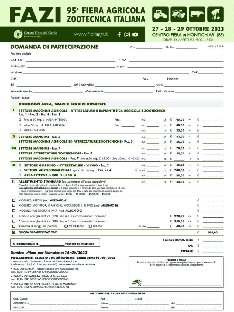 ORARI DI APERTURA: 9.00 19.00DOMANDA DI PARTECIPAZIONEData ___paginaNr. Prot. ___1di4Ragione sociale ___ Cod. Fisc. ___P. IVACodice SDI ___ o pec___ ___Indirizzo ___ CAP ___ Citt ___ Prov. ___ Nazione