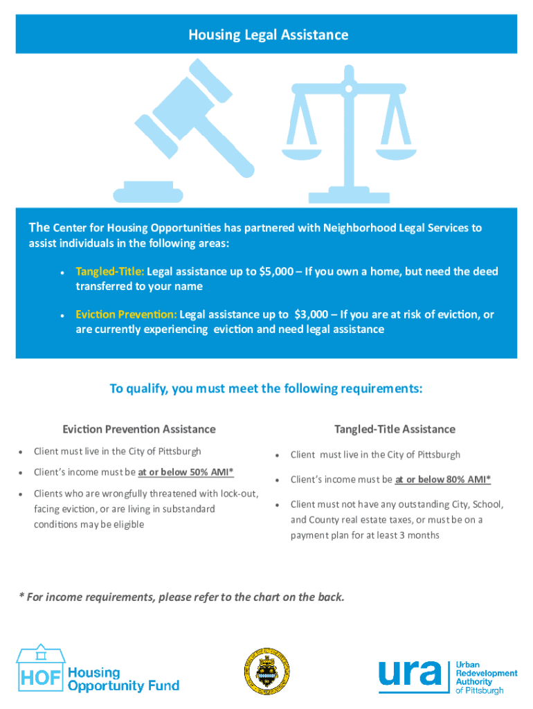 Housing Legal AssistanceThe Center for Housing Opportunities has partnered with Neighborhood Legal Services to assist individuals in the following areas: TangledTitle: Legal assistance up to $5,000