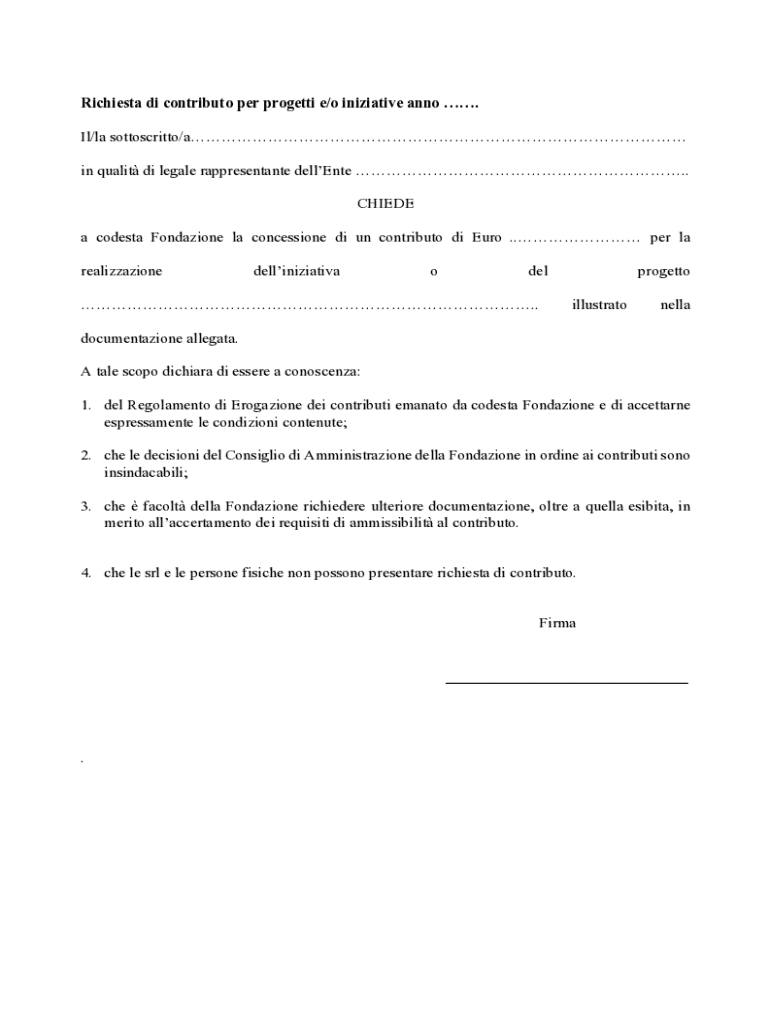 Ottieni il gratuito Richiesta di contributo per progetti e/o iniziative anno
