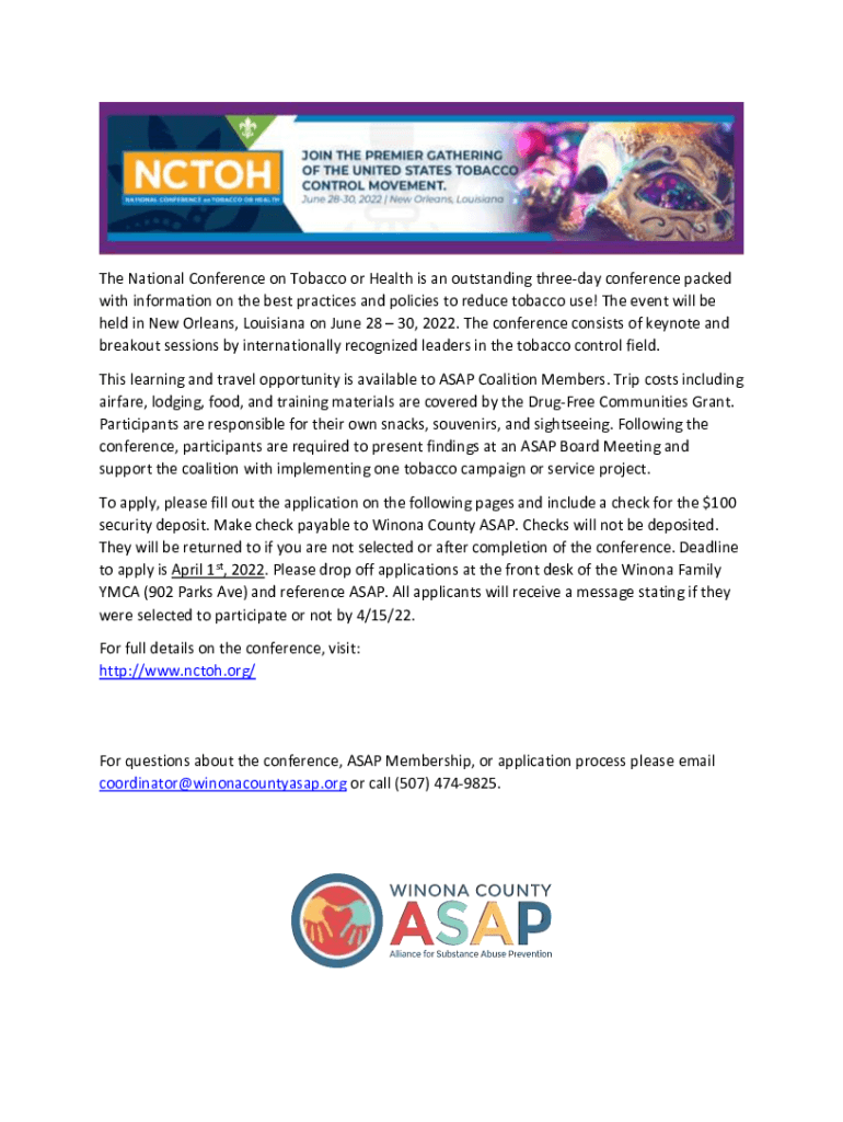 Get the free Apply for the National Conference on Tobacco or Health