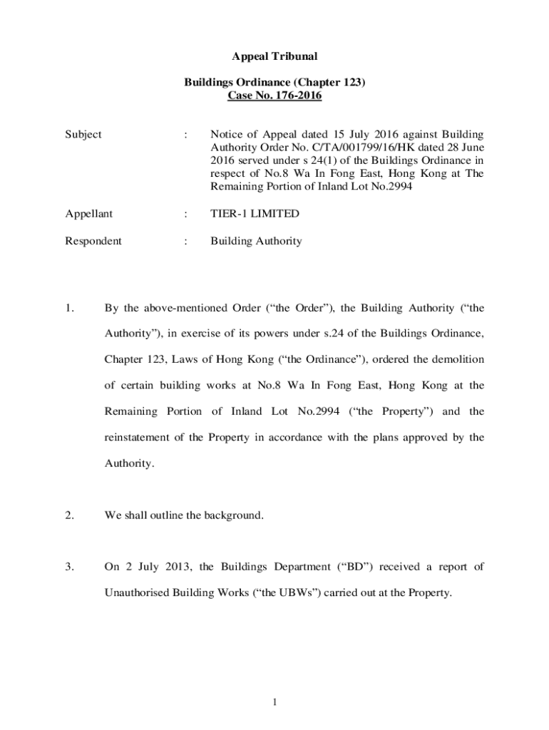 Get the free Notice of Appeal dated 15 July 2016 against Build