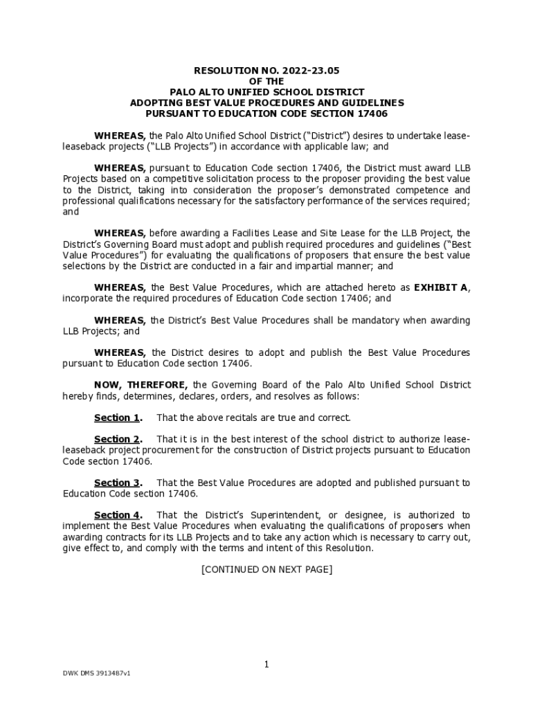 PURSUANT TO EDUCATION CODE SECTION 17406