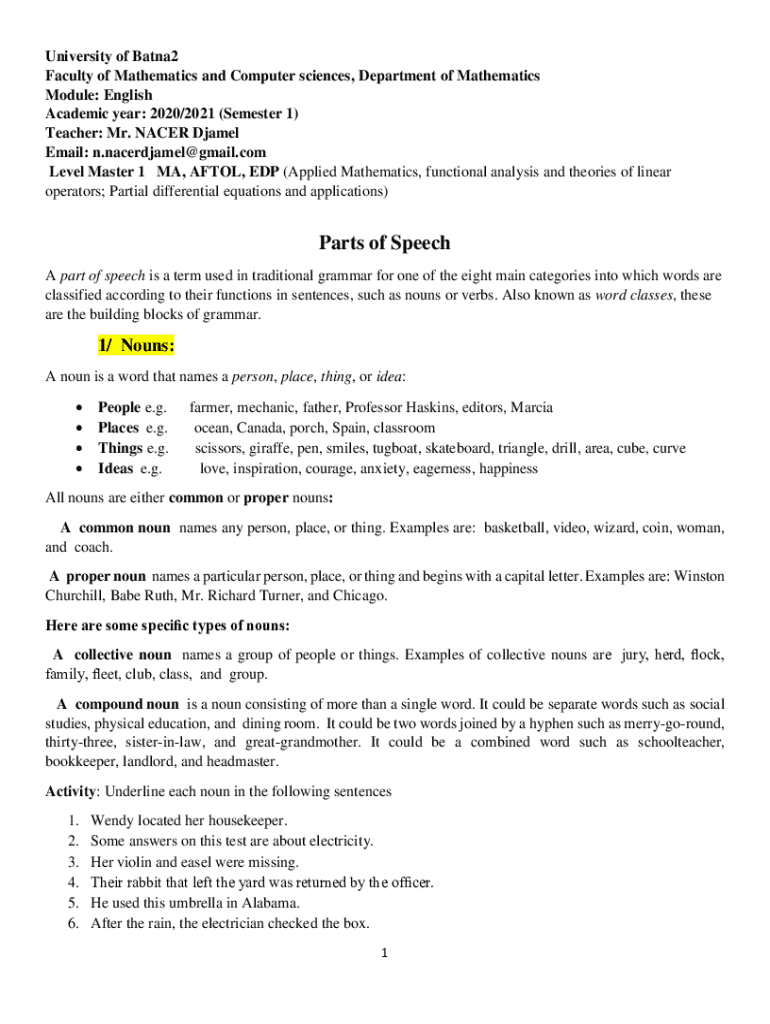 University of Batna2 Faculty of Mathematics and Computer sciences, Department of Mathematics Module: English Academic year: 2020/2021 (Semester 1) Teacher: Mr. NACER Djamel Email: n.nacerdjamel@gmail.com