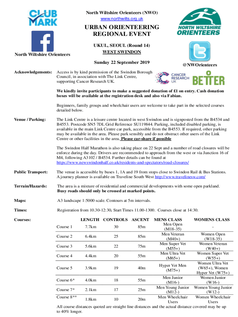 North Wiltshire Orienteers (NWO) www.northwilts.org.ukURBAN ORIENTEERING REGIONAL EVENTNorth Wiltshire OrienteersUKUL, SEOUL (Round 14) WEST SWINDON Sunday 22 September 2019Acknowledgements:@NWOrienteersAccess