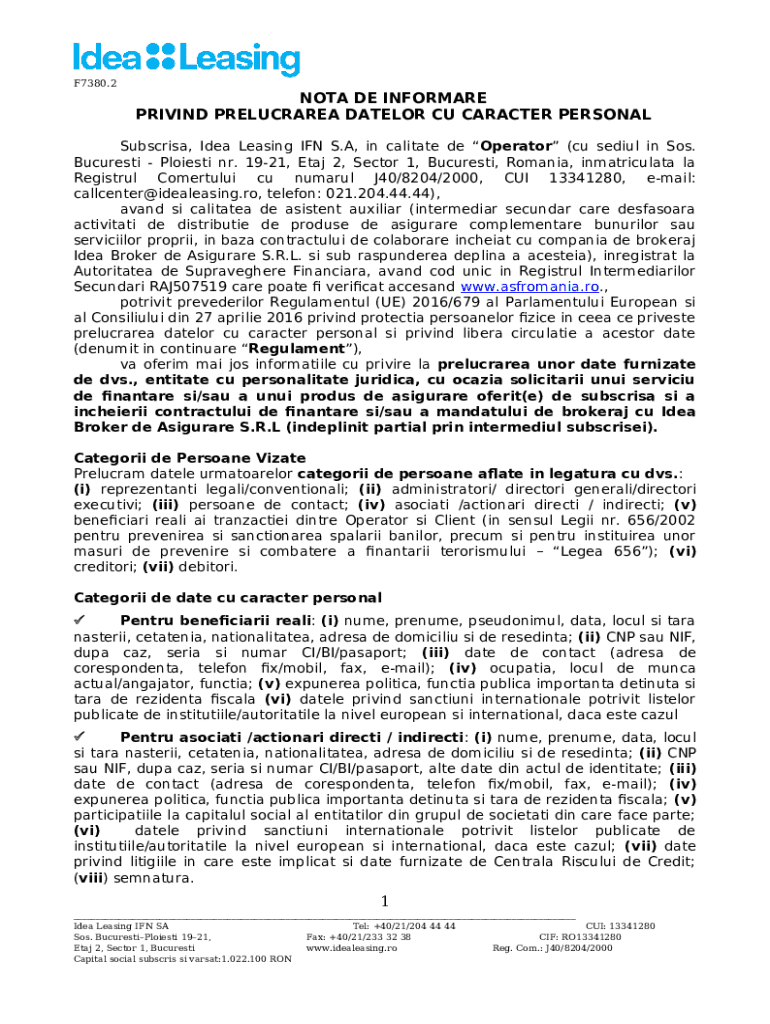 Template Nota de Inare Leasing Ida LeasingPDF instructions