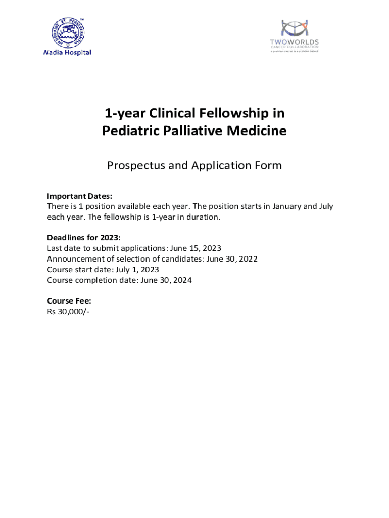 1year Clinical Fellowship in Pediatric Palliative Medicine Prospectus and Application Form Important Dates: There is 1 position available each year. The position starts in January and July each year.