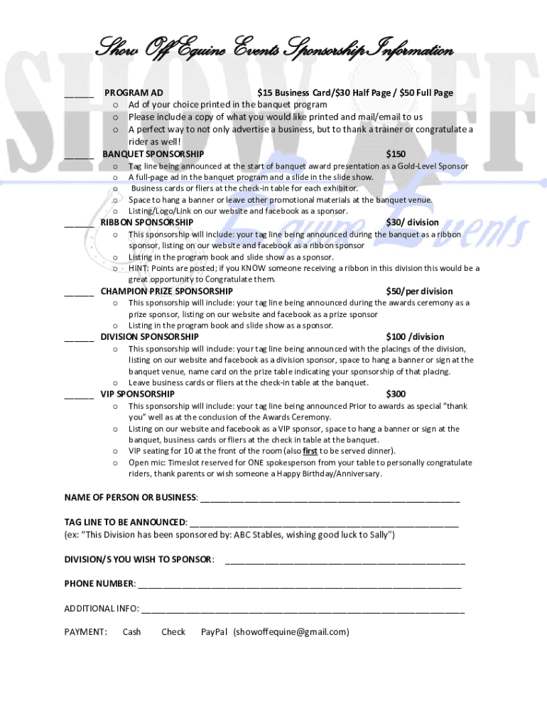 Get the free Show Off Equine Events Sponsorship Information