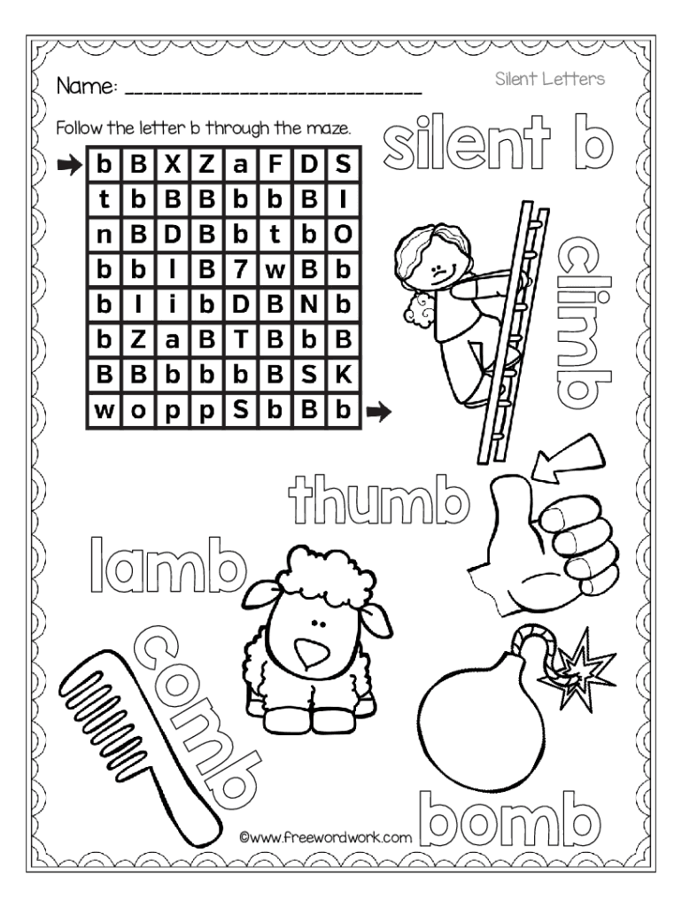 Name: ___ Follow the letter b through the maze.www.freewordwork.comSilent LettersName: ___ Follow the letter c through the maze.www.freewordwork.comSilent LettersName: ___ Follow the letter d through