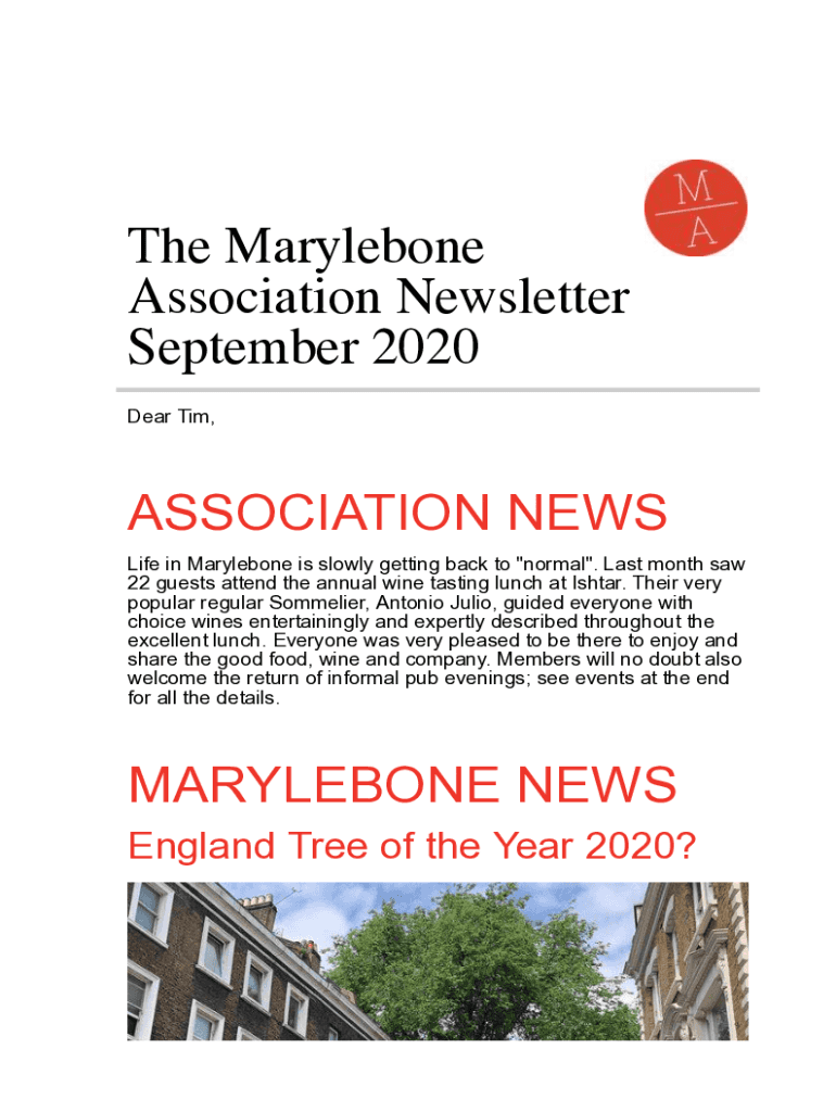From: Subject: Date: To:Marylebone Association Membership@marylebone.org The Marylebone Association Newsletter September 2020 1 September 2020 at 17:20 Tim Carnegie tim.carnegie@marylebone.orgThe