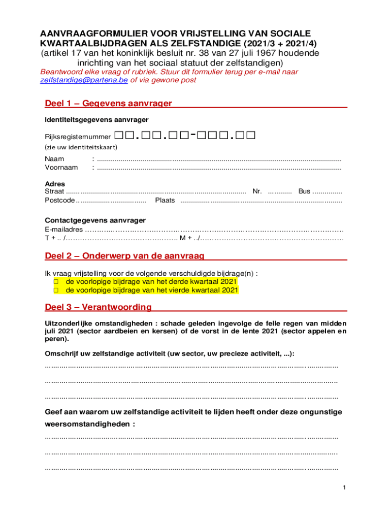 AANVRAAGFORMULIER VOOR VRIJSTELLING VAN SOCIALE