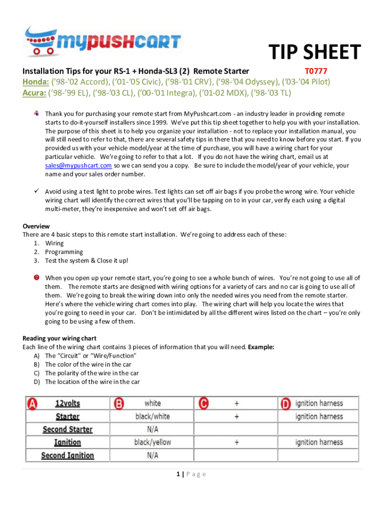 Installation Tips for your RS1 + HondaSL3 (2) Remote Starter
