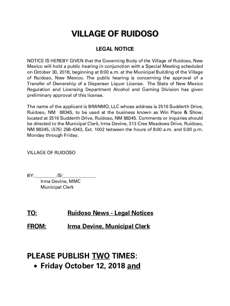 Get the free Public Hearing Notice Branmo Liquor License.docx