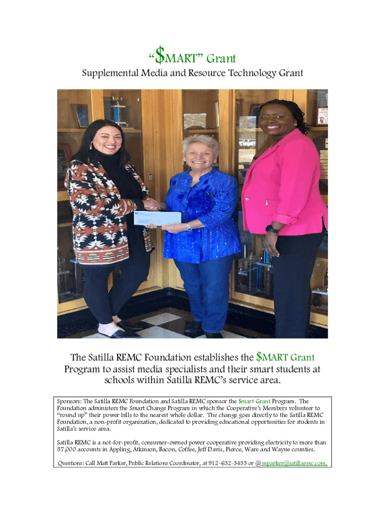 $ MART Grant Supplemental Media and Resource Technology GrantThe Satilla REMC Foundation establishes the $MART Grant Program to assist media specialists and their smart students at schools within
