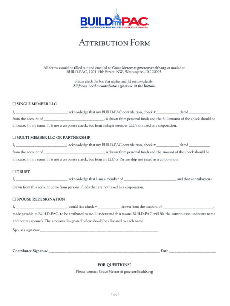 Attribution Form All forms should be filled out and emailed to Grace Mercer at gmercer@nahb.org or mailed to BUILDPAC, 1201 15th Street, NW, Washington, DC 20005. Please check the box that applies