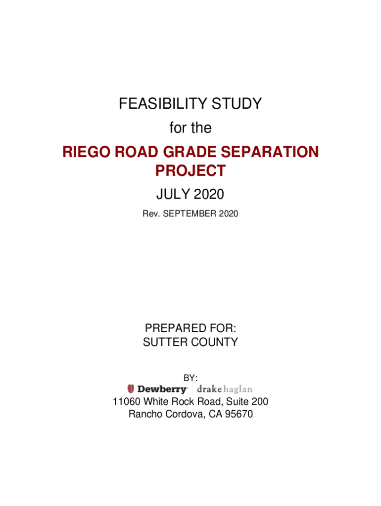 FEASIBILITY STUDY for the RIEGO ROAD GRADE SEPARATION PROJECT JULY 2020 Rev. SEPTEMBER 2020PREPARED FOR: SUTTER COUNTY BY:11060 White Rock Road, Suite 200 Rancho Cordova, CA 95670RIEGO ROAD GRADE
