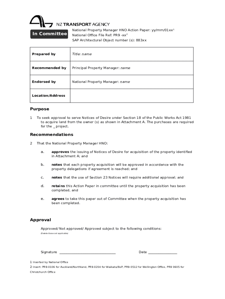 NZTA Acquisition Approval $2m plus. xx template instructions