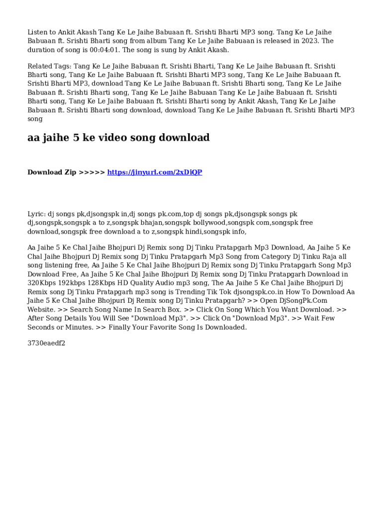 Listen to Ankit Akash Tang Ke Le Jaihe Babuaan ft. Srishti Bharti MP3 song. Tang Ke Le Jaihe Babuaan ft. Srishti Bharti song from album Tang Ke Le Jaihe Babuaan is released in 2023. The duration of