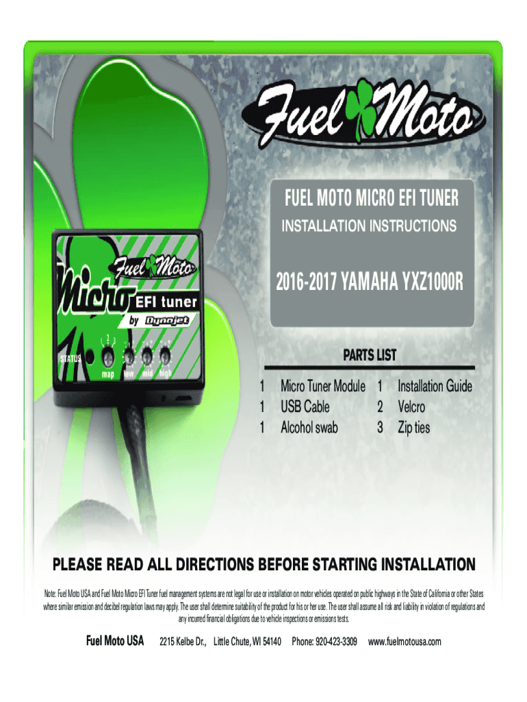 Get the free Note: Fuel Moto USA and Fuel Moto Micro EFI Tuner fuel management systems are not le...