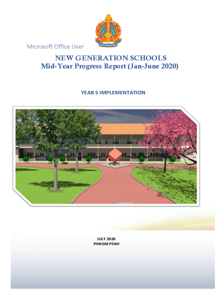 Microsoft Office UserNEW GENERATION SCHOOLS MidYear Progress Report (JanJune 2020)YEAR 5 IMPLEMENTATIONJULY 2020 PHNOM PENHTABLE OF CONTENTS 1.EXECUTIVE SUMMARY . . . . . . . . . . . . . . . . . .