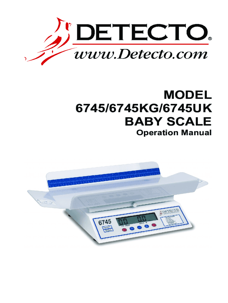 MODEL 6745/6745KG/6745UK BABY SCALE Operation Manual8535M074O1 Rev C 6745 Baby Scale Operation128535M074O1 Rev C 6745 Baby Scale OperationITABLE OF CONTENTSINTRODUCTION QUICK START CARE AND CLEANING