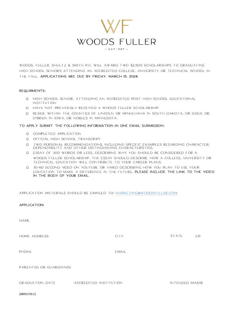 Get the free Woods Fuller Scholarship Application