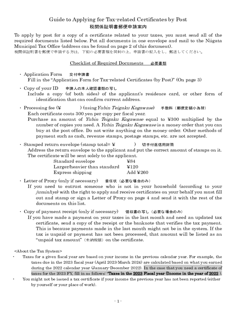 Guide to Applying for Taxrelated Certificates by Post To apply by post for a copy of a certificate related to your taxes, you must send all of the required documents listed below. Put all documents