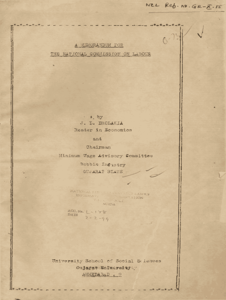 Get the free A Memorandum for the National Commission on Labour. Memorandum