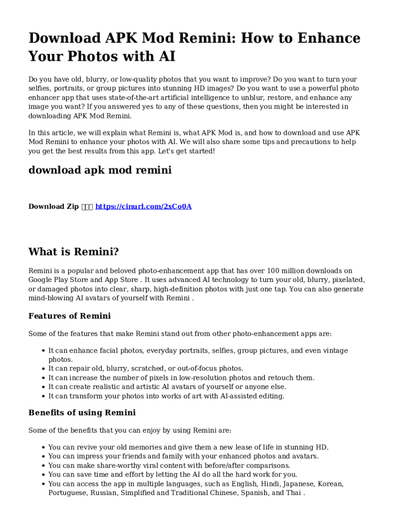 Download APK Mod Remini: How to Enhance Your Photos with AI Do you have old, blurry, or lowquality photos that you want to improve? Do you want to turn your selfies, portraits, or group pictures into