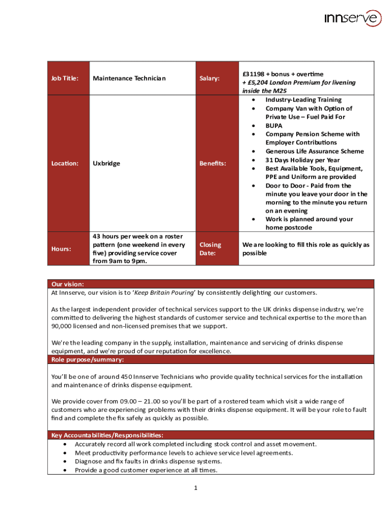 Job Title:Maintenance TechnicianSalary:Location:UxbridgeBenefits:Hours:43 hours per week on a roster