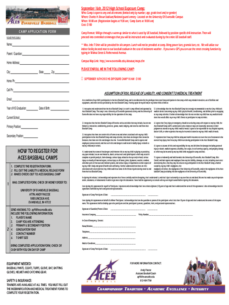 September 16th, 2012 High School Exposure Camp: Who: Camp is open to any and all entrants (limited only by number, age, grade level and/or gender) Where: Charles H. Braun Stadium/National guard armory